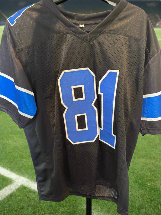Autographed/Signed CALVIN JOHNSON 81 - Custom Detroit Black Football Jersey - JSA COA
