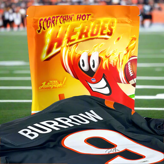 'FLAMIN' HOT HEROS JERSEY IS SCORTCHIN' HOT HEROES - MYSTERY BAG - 1 FOOTBALL JERSEY - AUTHENTIC AUTOGRAPH