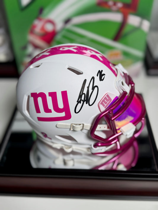 • Saquon Barkley Signed Breast Cancer Awareness Mini Helmet – Beckett COA – One of a Kind